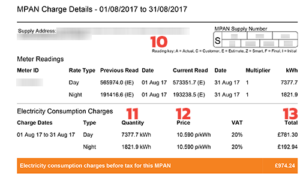 7 MPAN – This is your meter point administration number and can be used to uniquely identify your electricity supply points.